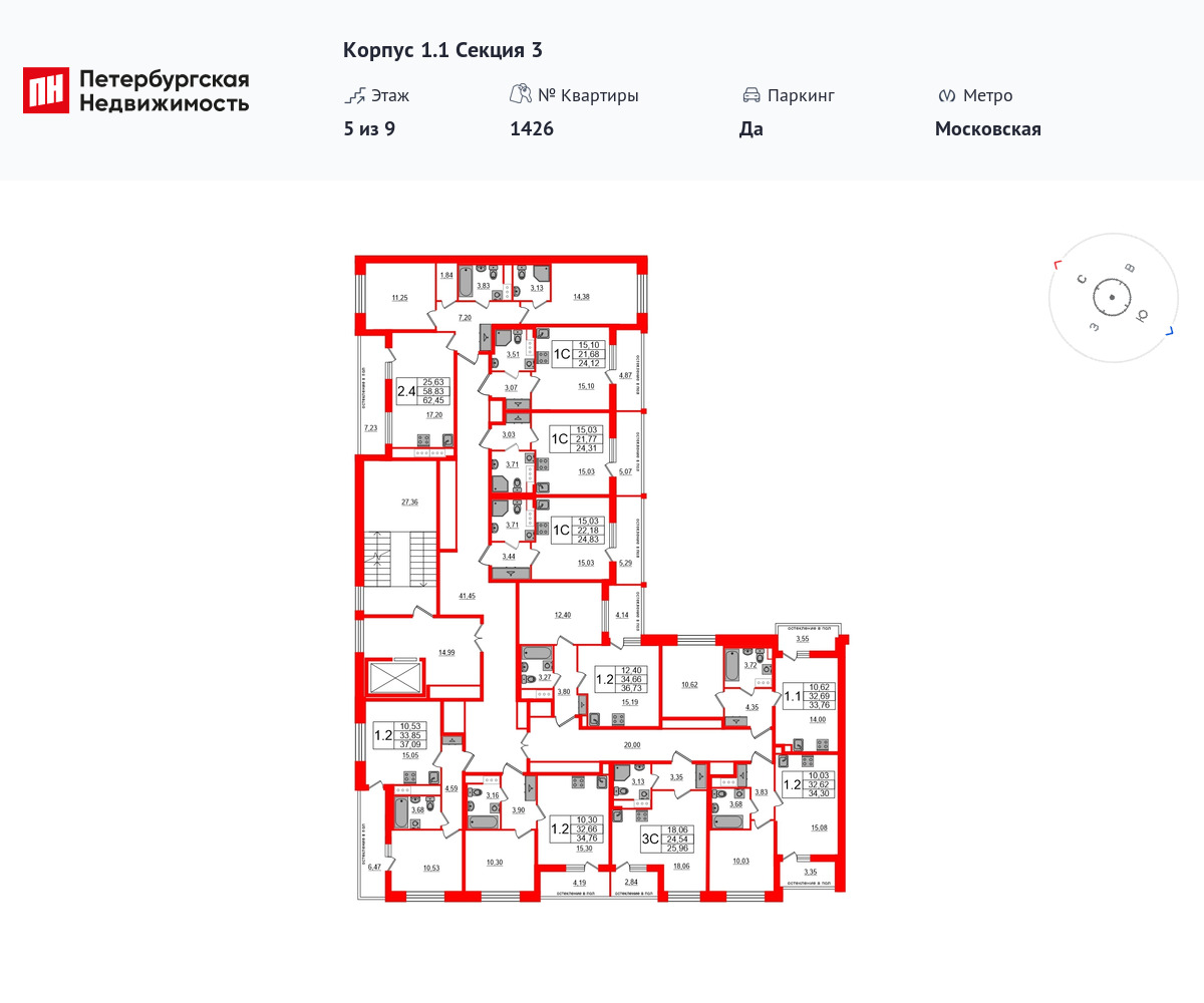 Удобная, классическая, функциональная европланировка, просторная прихожая 3.35 м². Общая площадь студии - 24.54 м², жилая – 18.06 м², высота потолка 2.77 м.