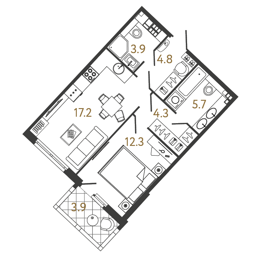 Площадь: 48.2 / 12.3 / 17.2