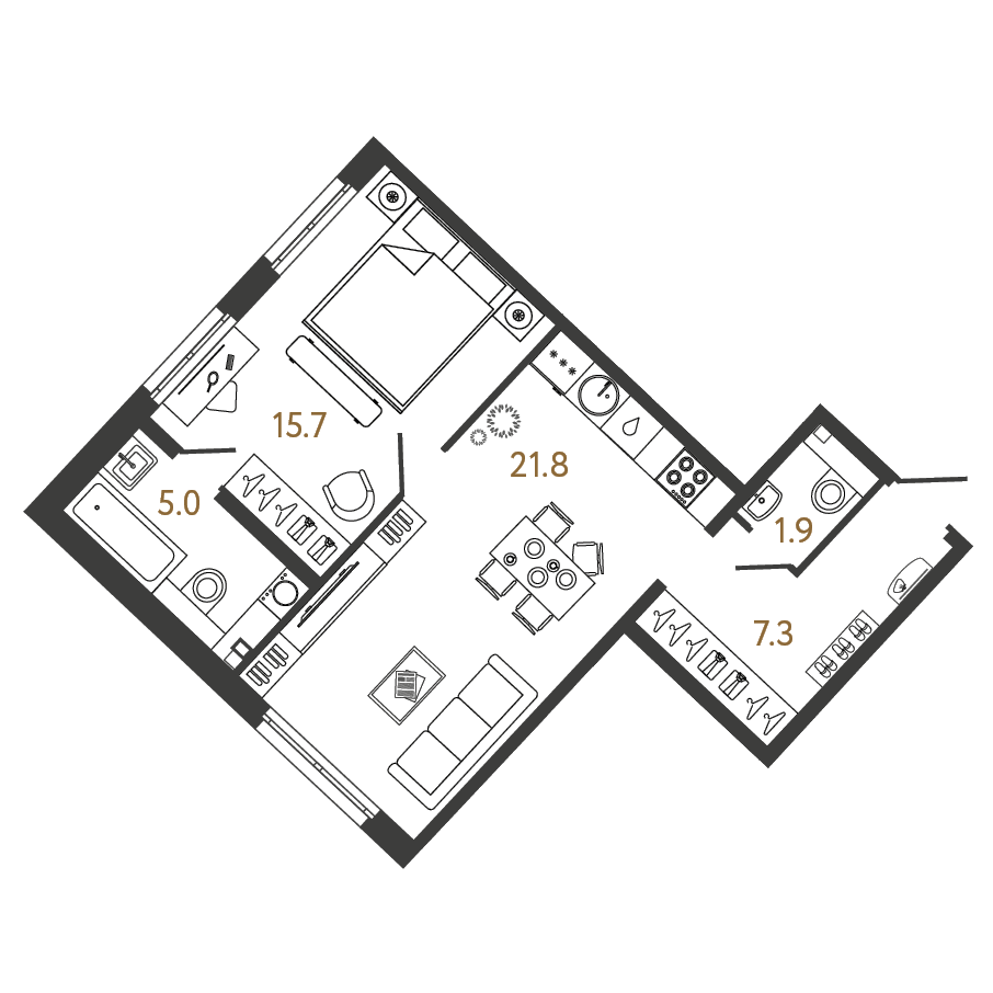 Площадь: 51.7 / 15.7 / 21.8