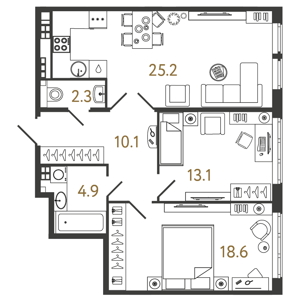 Площадь: 74.2 / 31.7 / 25.2