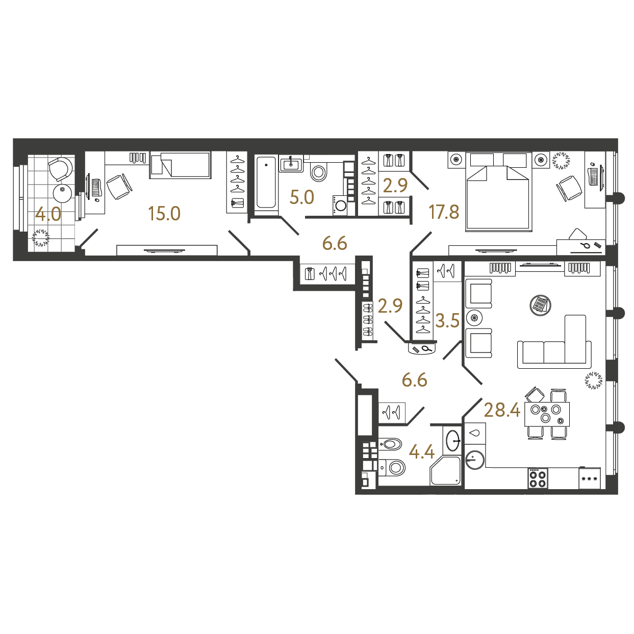 Площадь: 93.1 / 32.8 / 28.4