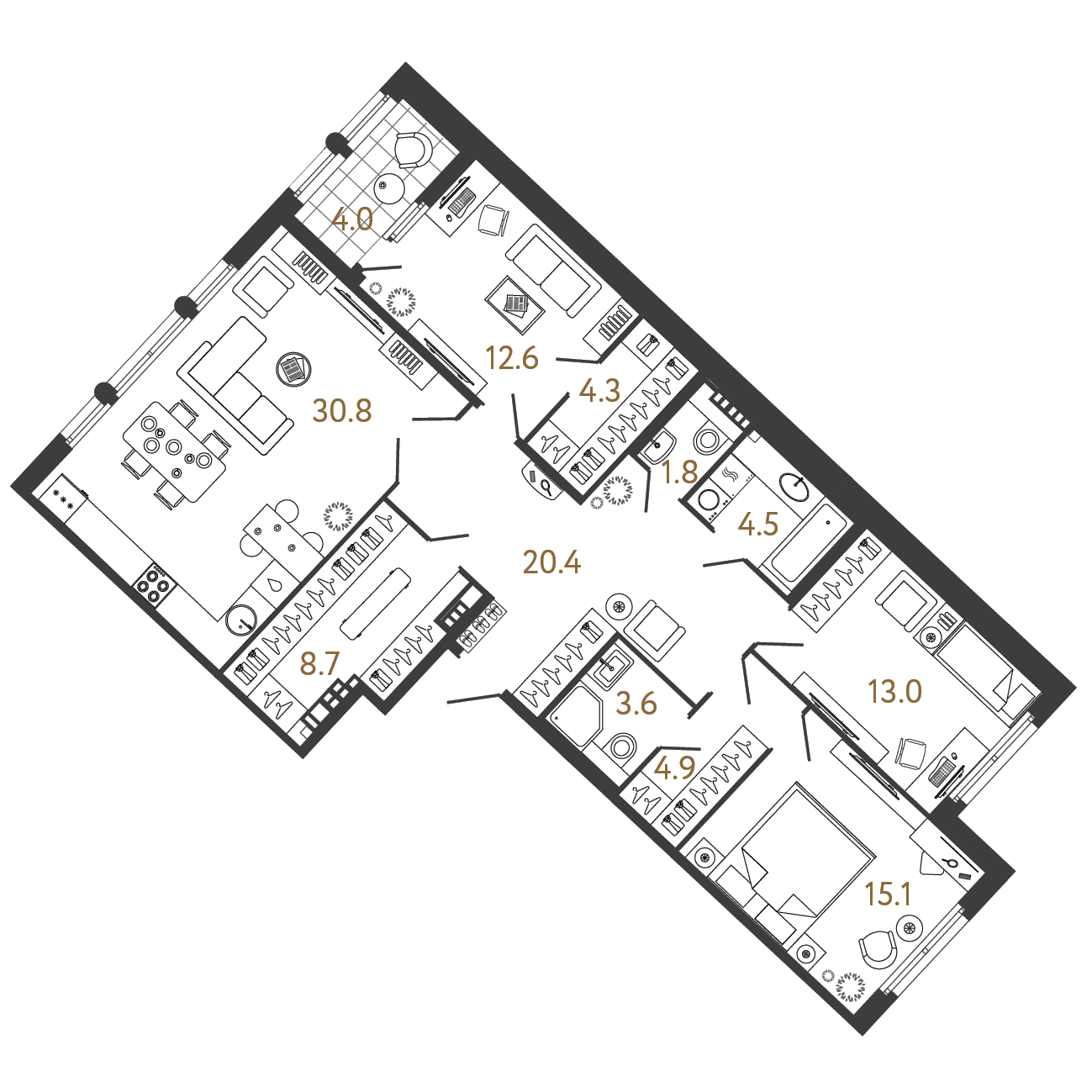 Площадь: 119.7 / 40.7 / 30.8