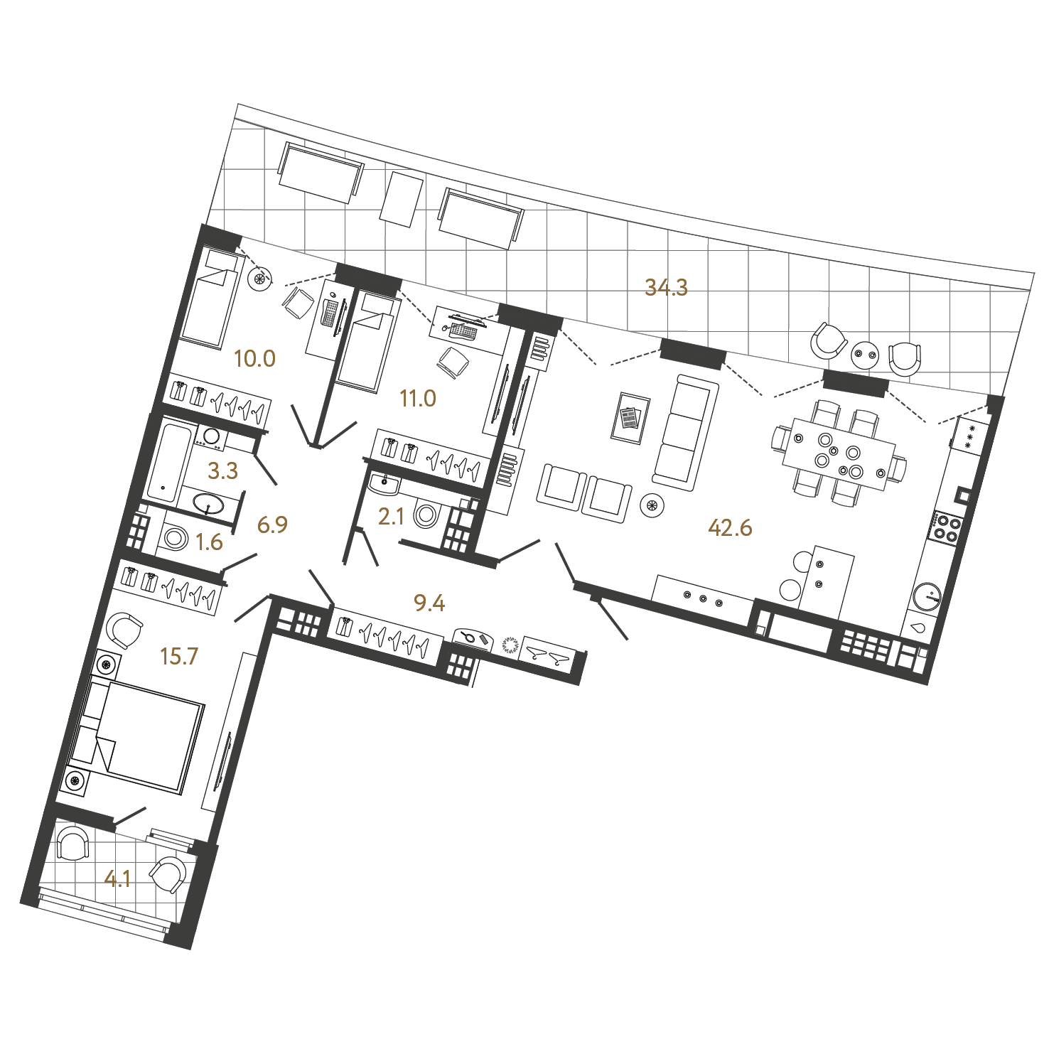 Площадь: 102.6 / 36.7 / 42.6