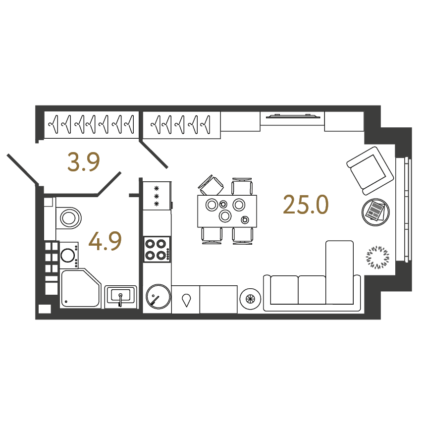 Площадь: 33.8 / 25