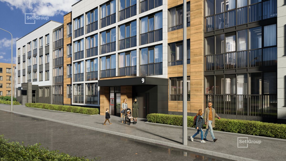 • Скандинавские фасады с отделкой керамогранитом, акцентные входные группы