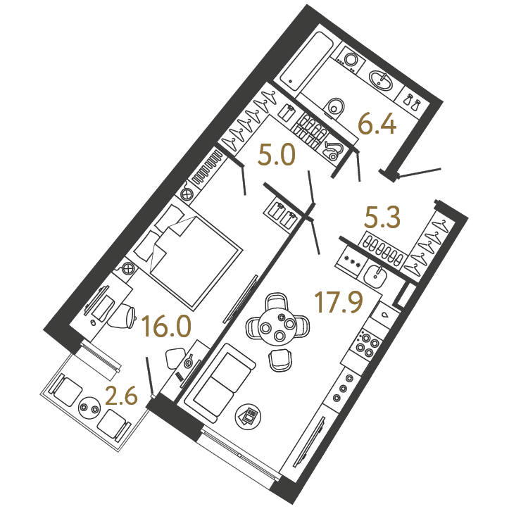 Площадь: 50.6 / 16 / 17.9