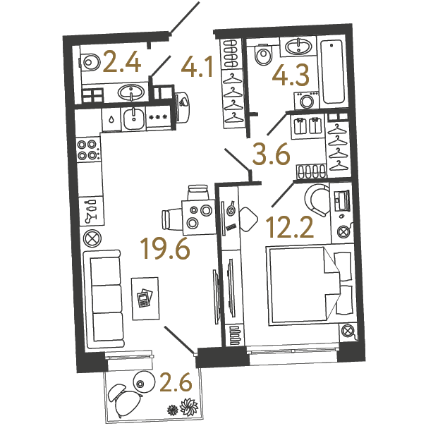 Площадь: 46.2 / 12.2 / 19.6
