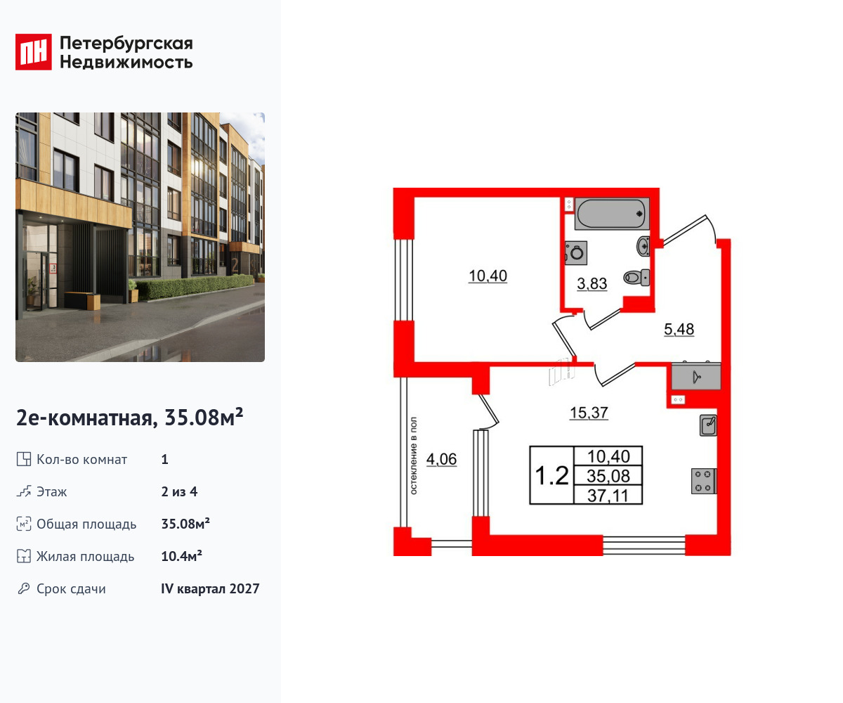 Продается уютная 1-комнатная квартира от застройщика в жилом комплексе «Univer City» в на юге Санкт-Петербурга. До метро можно добраться на транспорте всего за 30 минут. Удобная, классическая, функциональная европланировка, большая кухня-гостиная 15.37 м², просторная прихожая 5.48 м². Общая площадь квартиры - 35.08 м², жилая – 10.4 м², высота потолка 2.77 м. Квартира продается с отделкой «NORD LINE SILVER». Что особенного в ЖК «Univer City»? • Малоэтажное строительство • Скандинавские фасады с отделкой керамогранитом, акцентные входные группы • Закрытые внутренние дворы без машин • Пешеходный променад с тематическими зонами, еловый сквер и яблоневый сад • Univer Park, включая SetlSport и SetlKids, площадку для выгула собак и зоны отдыха • Инновационный Лицей Setl с оригинальной архитектурной концепцией и уникальной образовательной средой