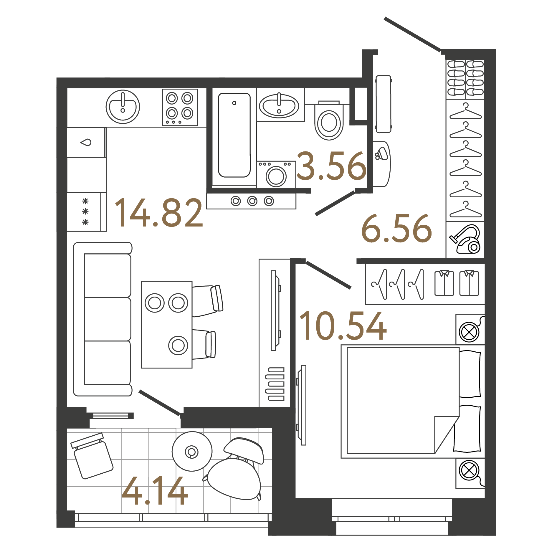 Площадь: 35.48 / 10.54 / 14.82