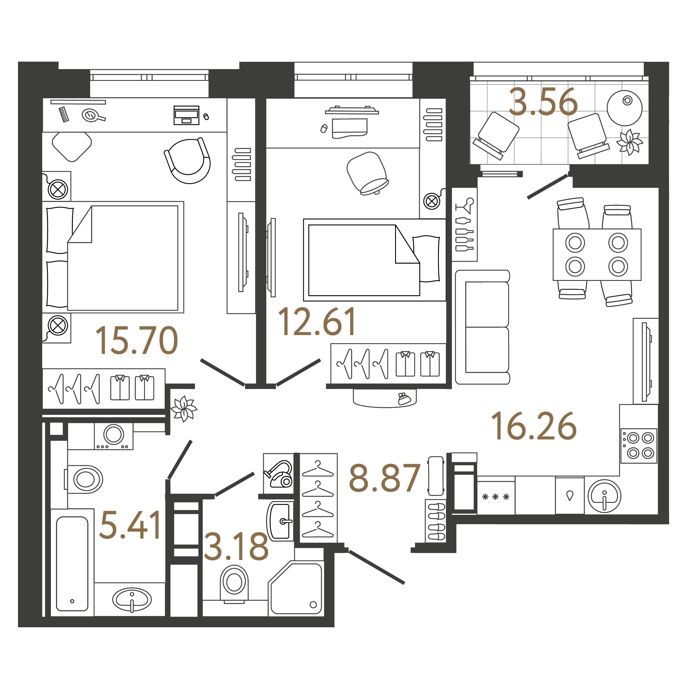 Площадь: 62.03 / 28.31 / 16.26