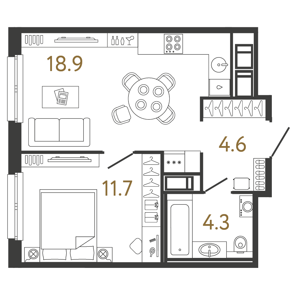 Площадь: 39.5 / 11.7 / 18.9