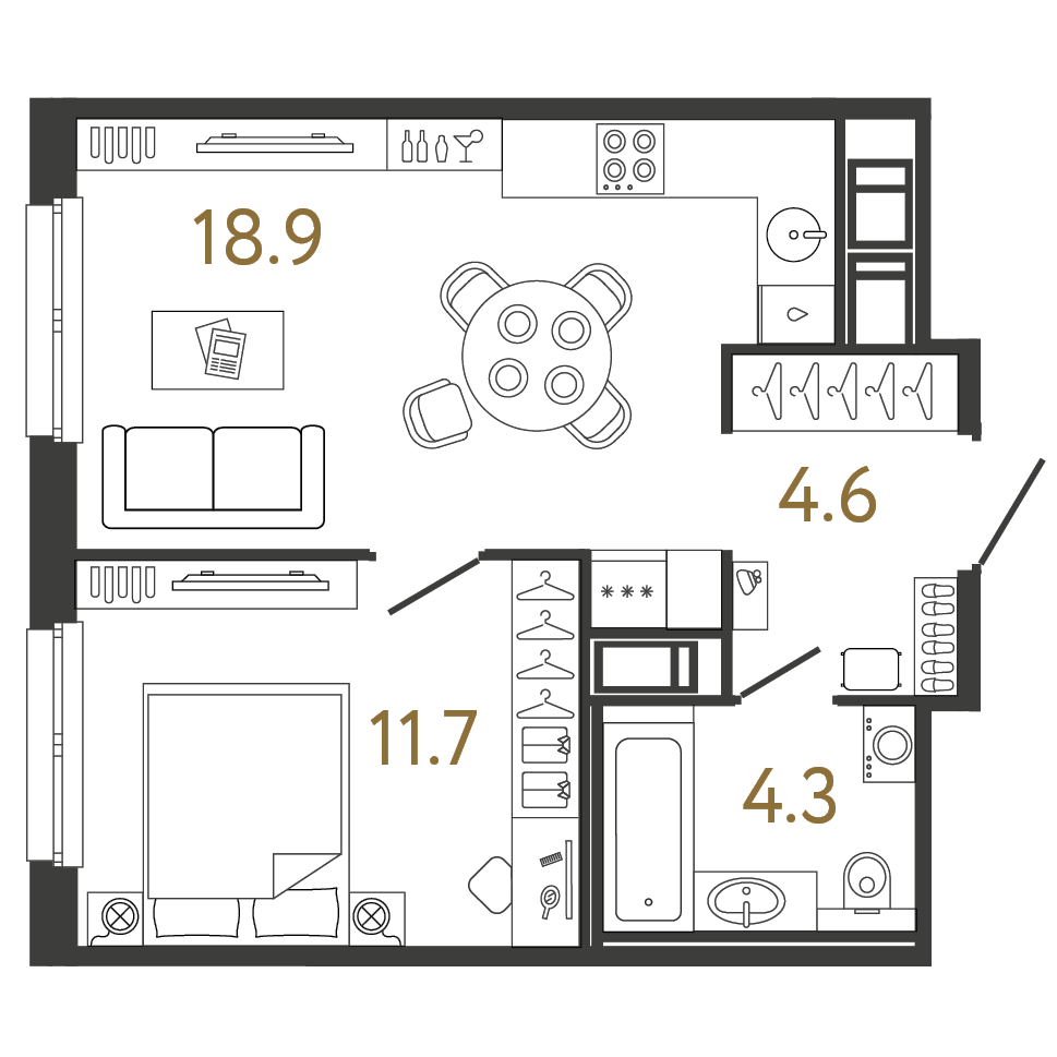 Площадь: 39.5 / 11.7 / 18.9