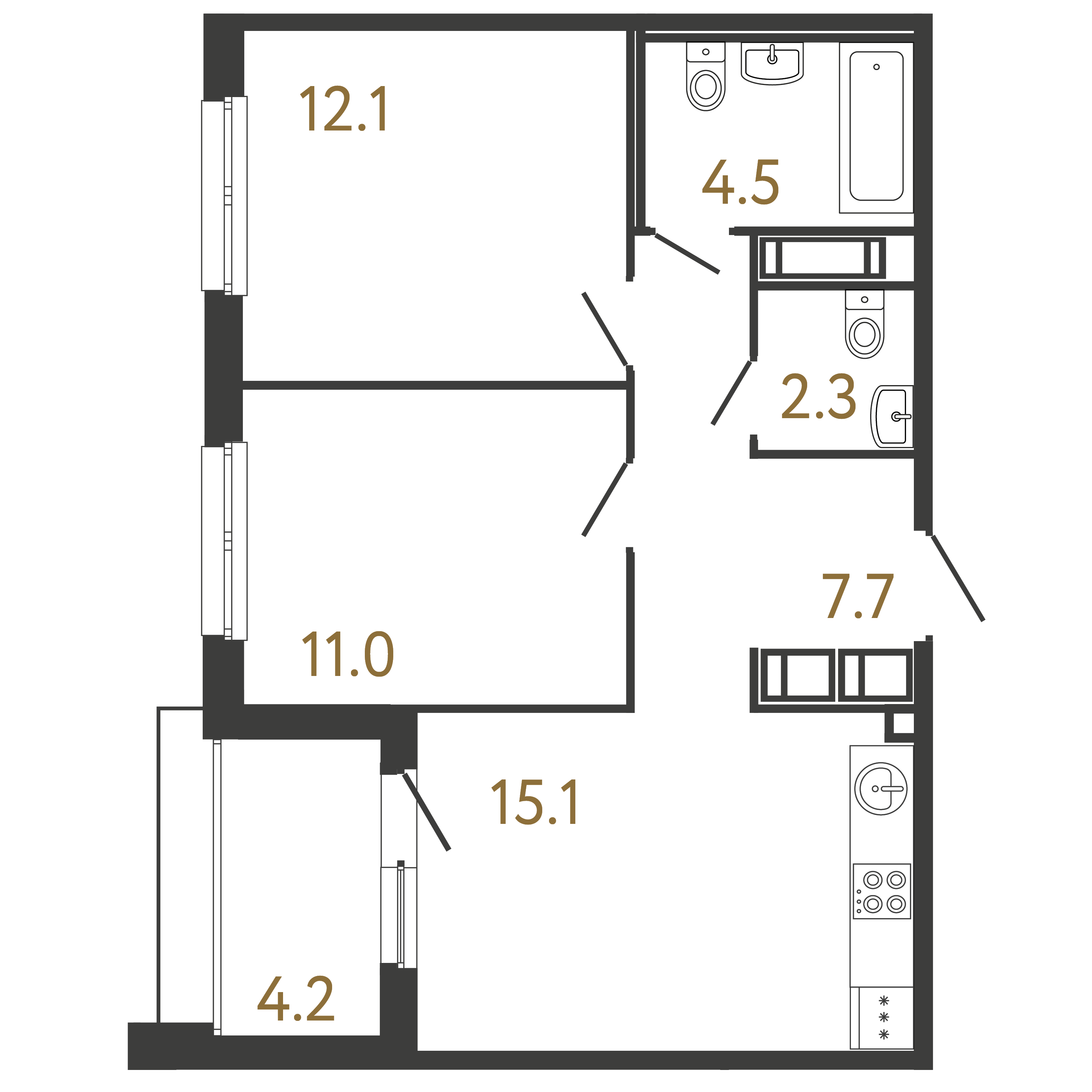 Площадь: 52.7 / 23.1 / 15.1