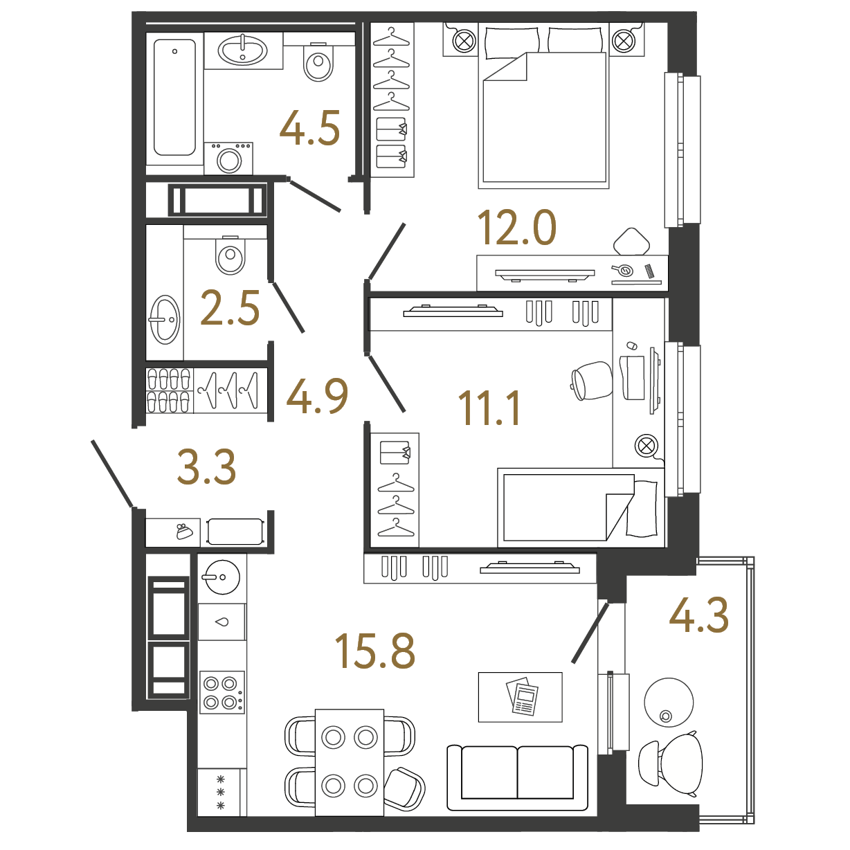 Площадь: 54.1 / 23.1 / 15.8