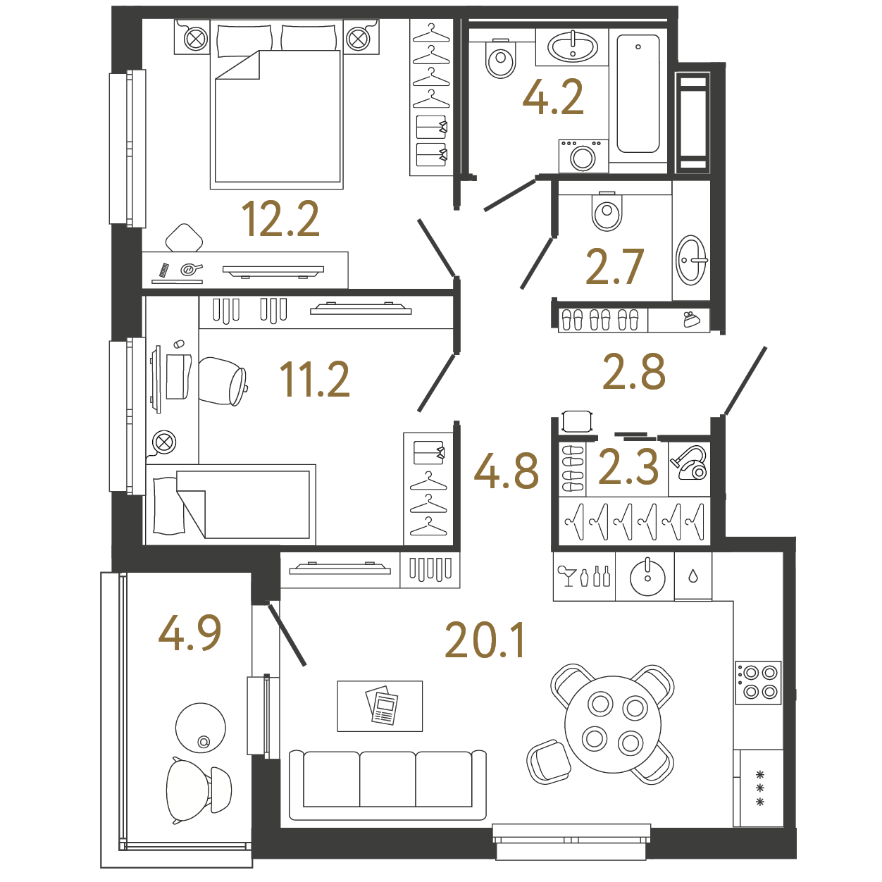 Площадь: 60.3 / 23.4 / 20.1