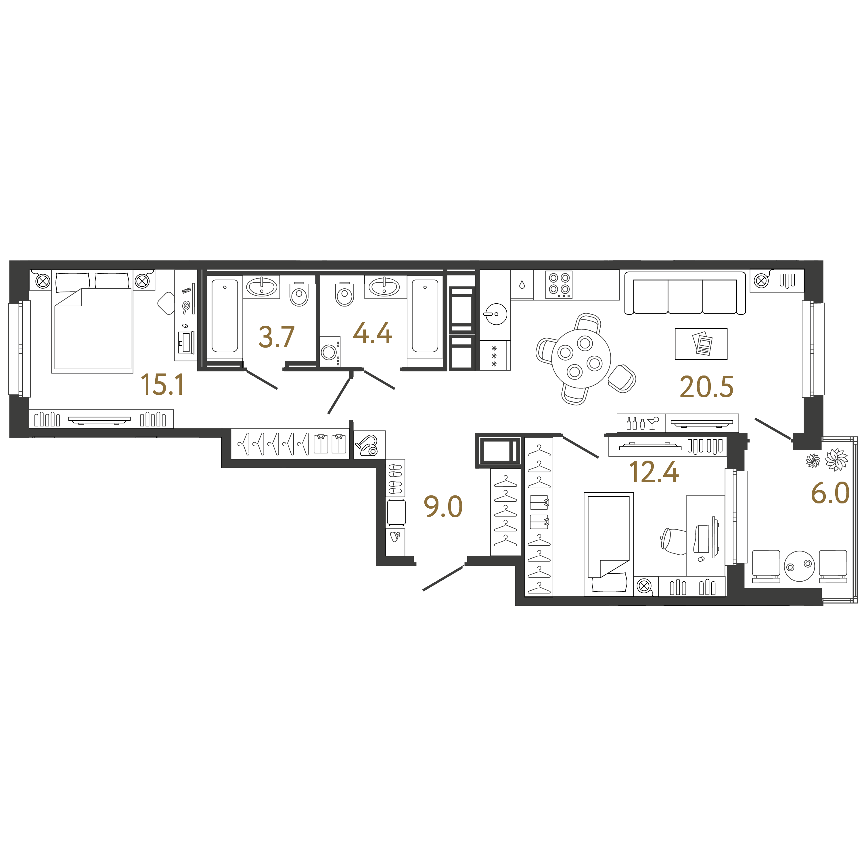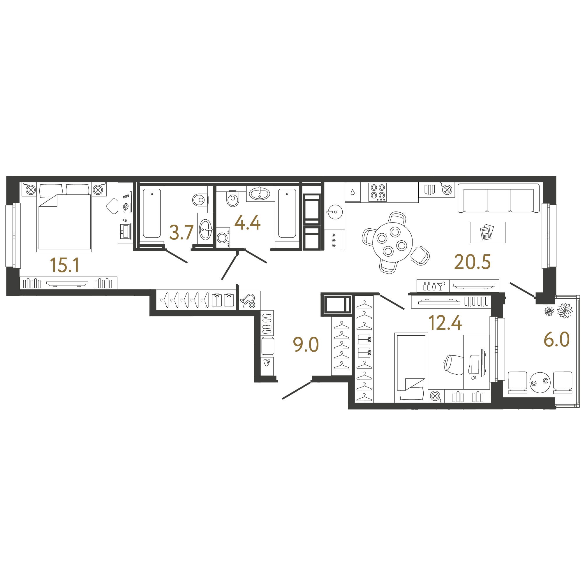 Площадь: 65.1 / 27.5 / 20.5