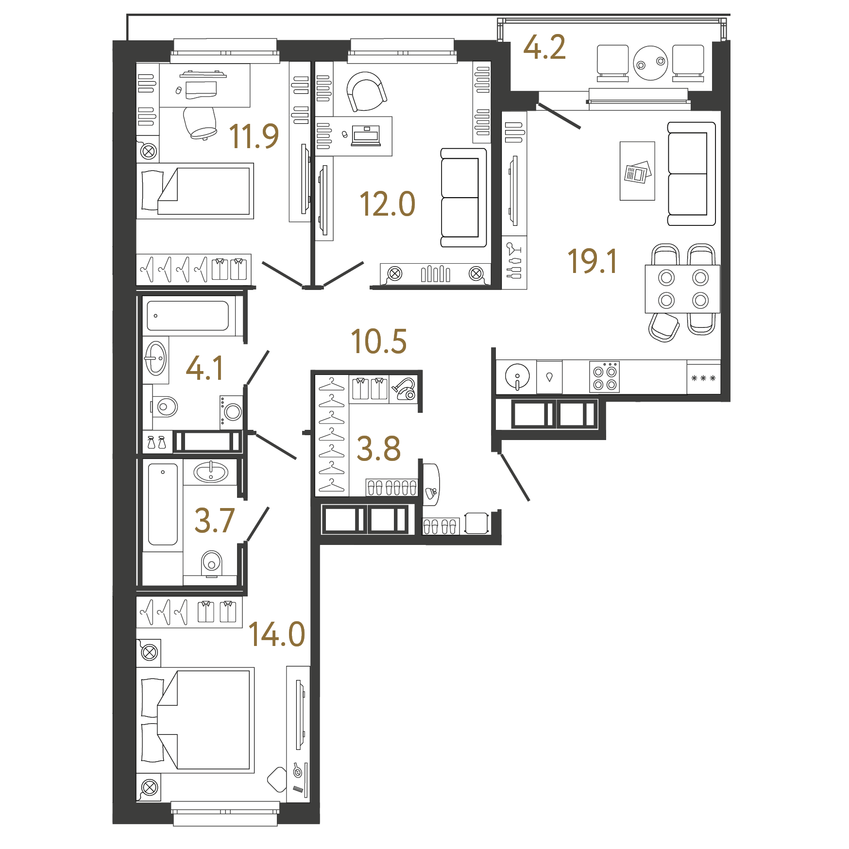 Площадь: 79.1 / 37.9 / 19.1