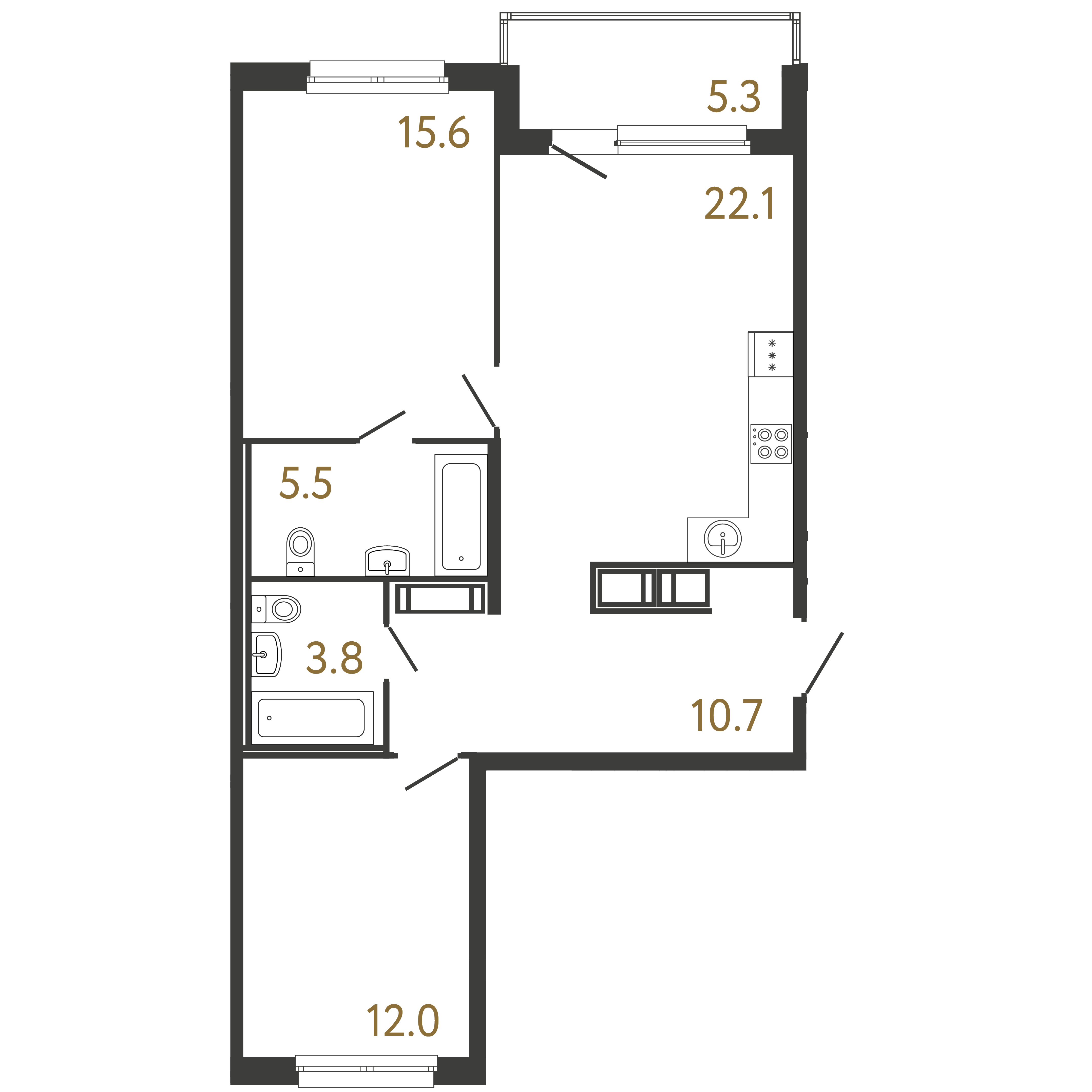 Площадь: 69.7 / 27.6 / 22.1