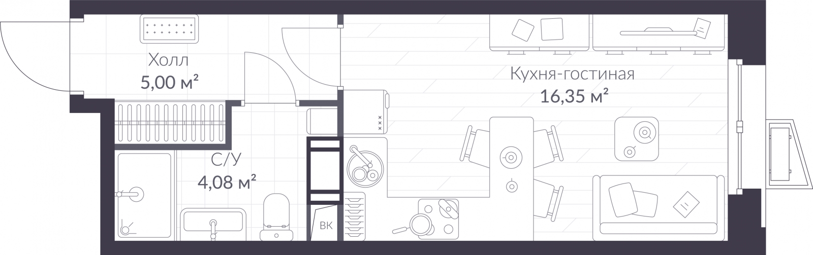 Просторная 1-комн. квартира-студия в Veren Nort Сертолово на 2 этаже. Квартира без отделки, полностью готова к чистовой отделке и дальнейшему ремонту. Общая площадь: 25.43 кв.м., площадь гостиной 16.34 кв.м., из которых 5 кв.м. выделено под кухонную зону. Все окна выходят на одну сторону. В квартире один совмещенный санузел. Высота потолков 2.82 м.