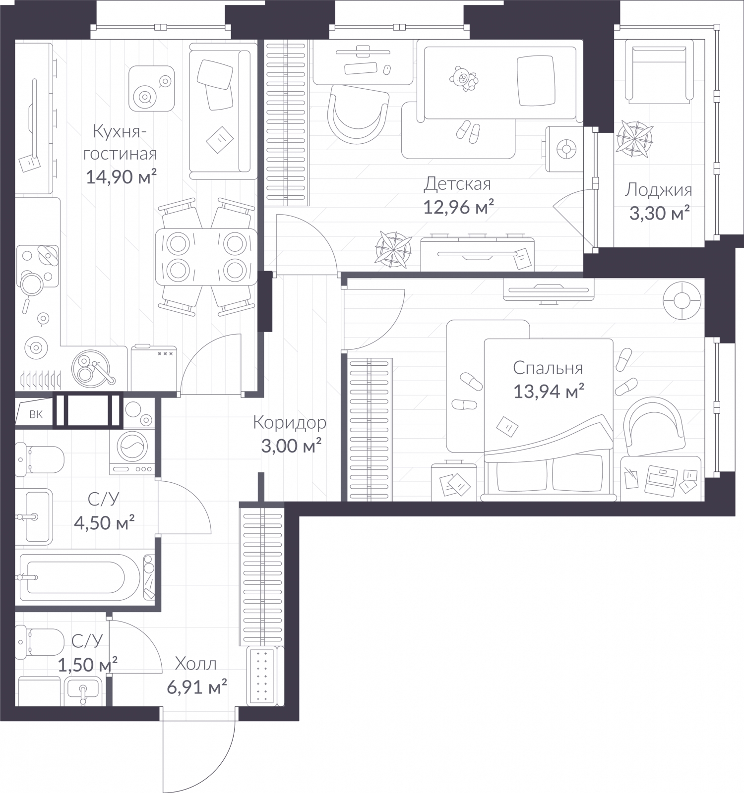 Просторная 2-комн. квартира в Veren Nort Сертолово на 10 этаже. Квартира без отделки, после оформления собственности можно делать ремонт. Общая площадь: 59.36 кв.м., жилая: 26.9 кв.м., площадь просторной куxни-гостиной: 14.9 кв.м. Угловая квартира, идеально подойдет любителям тишины и панорамных видов. В квартире одна лоджия, один совмещенный и один раздельный санузел. Высота потолков 2.82 м.