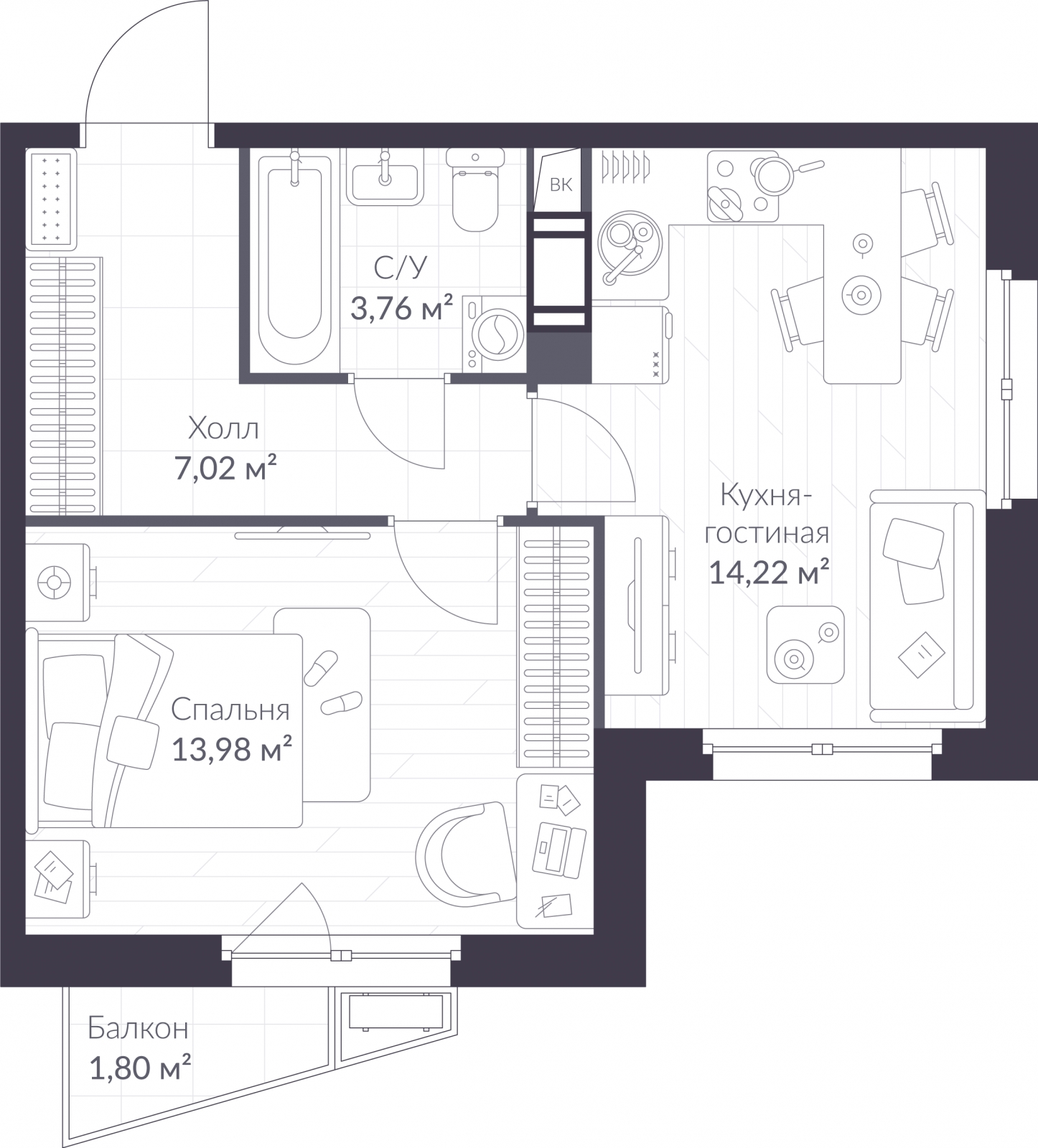 Однокомнатная квартира с предчистовой отделкой в Veren Nort Сертолово на 8 этаже. Общая площадь: 39.52 кв.м., жилая: 13.98 кв.м., площадь просторной куxни-гостиной: 14.22 кв.м. Квартира угловая, идеально подойдет любителям тишины и панорамных видов. В квартире один балкон, один совмещенный санузел. Высота потолков 2.82 м.