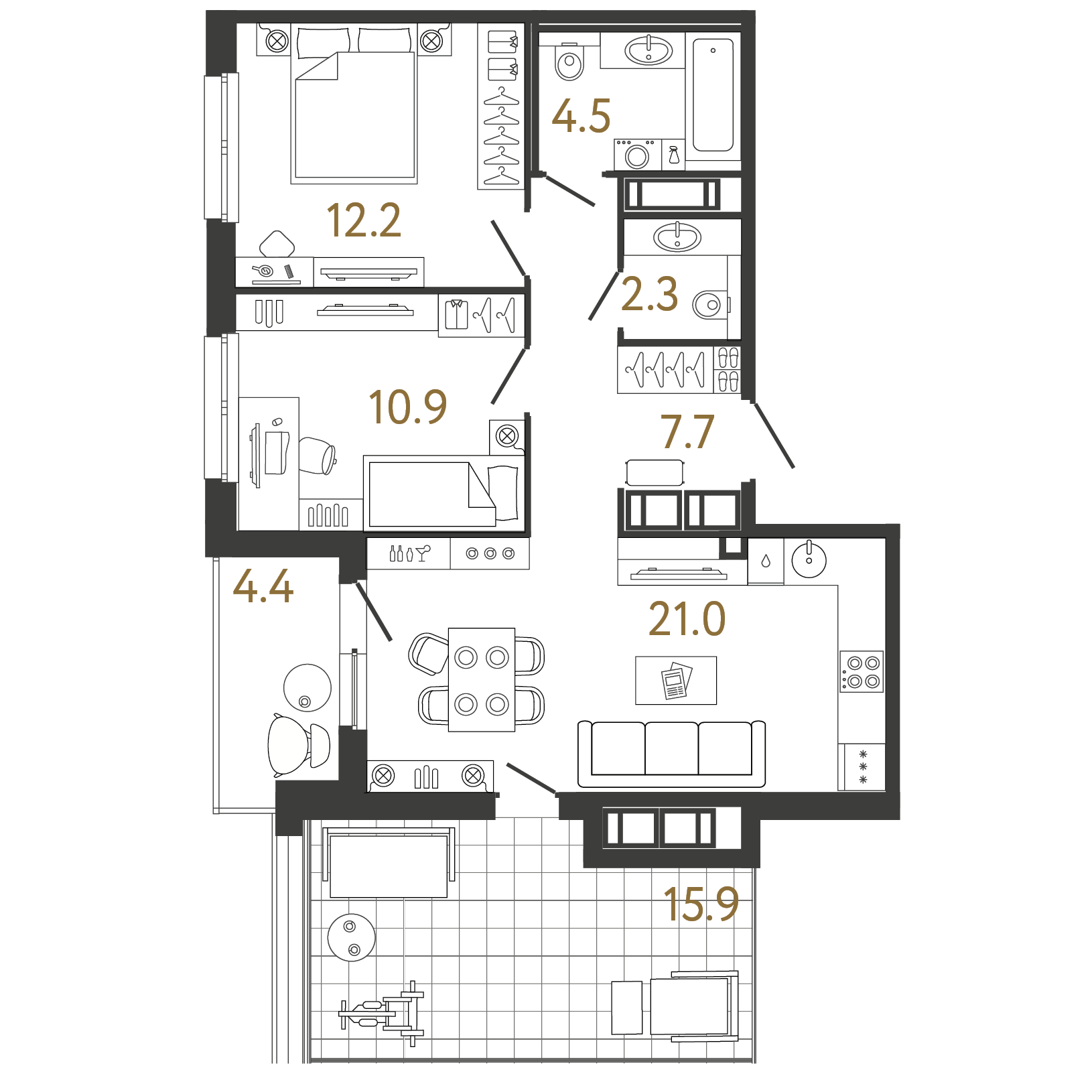 Площадь: 58.6 / 23.1 / 21