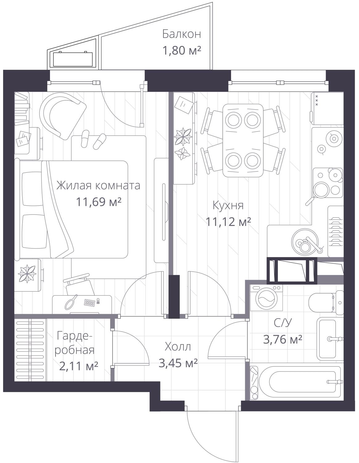 1-комн. квартира от застройщика в Veren Nort Сертолово на 5 этаже. Квартира без отделки, новый собственник может сделать ремонт по индивидуальному дизайн-проекту. Общая площадь: 32.72 кв.м., жилая: 11.7 кв.м., площадь просторной куxни-гостиной: 11.14 кв.м. Все окна выходят на одну сторону. В квартире один балкон, один совмещенный санузел. Высота потолков 2.82 м.