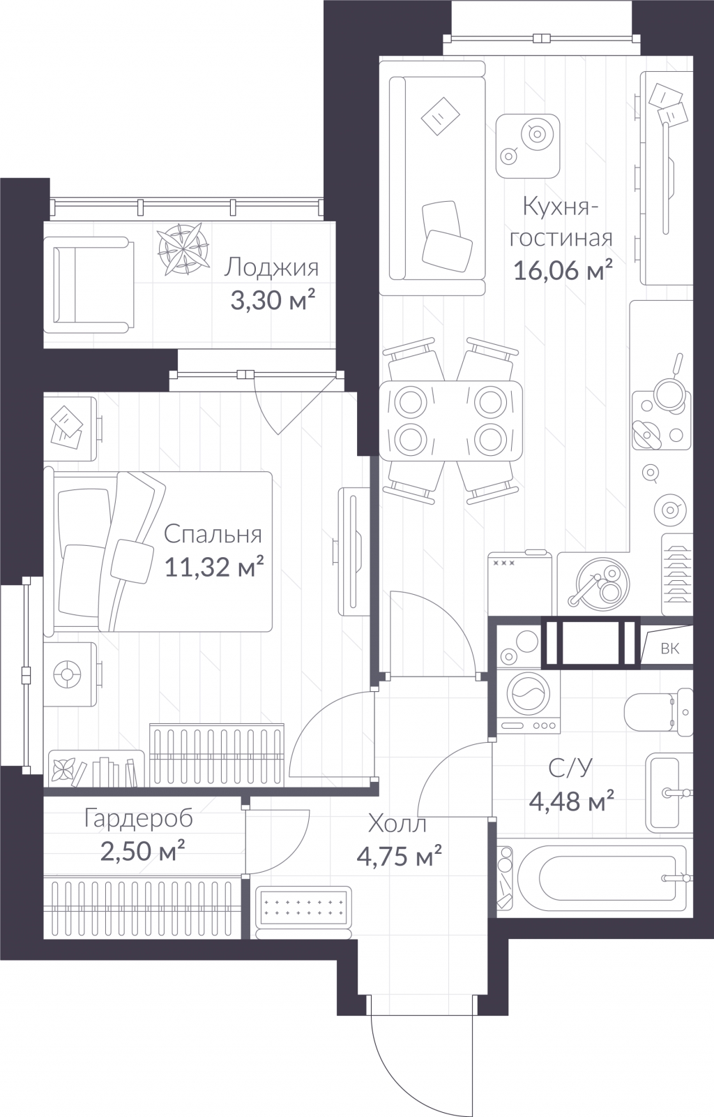 1-комн. квартира в Veren Nort Сертолово на 10 этаже. Квартира без отделки, новый собственник может сделать ремонт по индивидуальному проекту. Общая площадь: 40.76 кв.м., жилая: 11.32 кв.м., площадь просторной куxни-гостиной: 16.06 кв.м. Угловая квартира, очень светлая, естественная вентиляция при открытии окон. В квартире одна лоджия, один совмещенный санузел. Высота потолков 2.82 м.