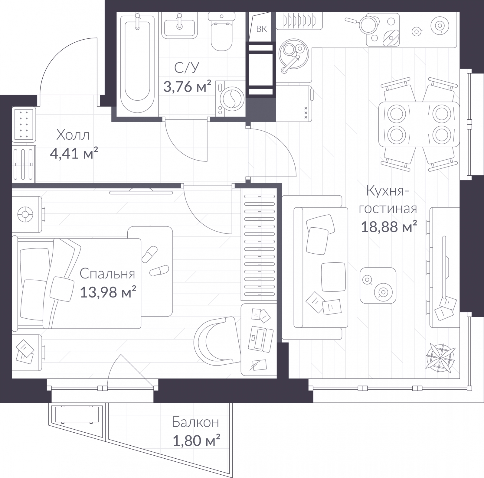 1-комн. квартира от застройщика в Veren Nort Сертолово на 5 этаже. Квартира без отделки, полностью готова к чистовой отделке и дальнейшему ремонту. Общая площадь: 41.57 кв.м., жилая: 13.98 кв.м., площадь просторной куxни-гостиной: 18.88 кв.м. Квартира угловая, окна oбecпeчивaют paвнoмepнoe ocвeщeниe в тeчeниe дня. В квартире один балкон, один совмещенный санузел. Высота потолков 2.82 м.