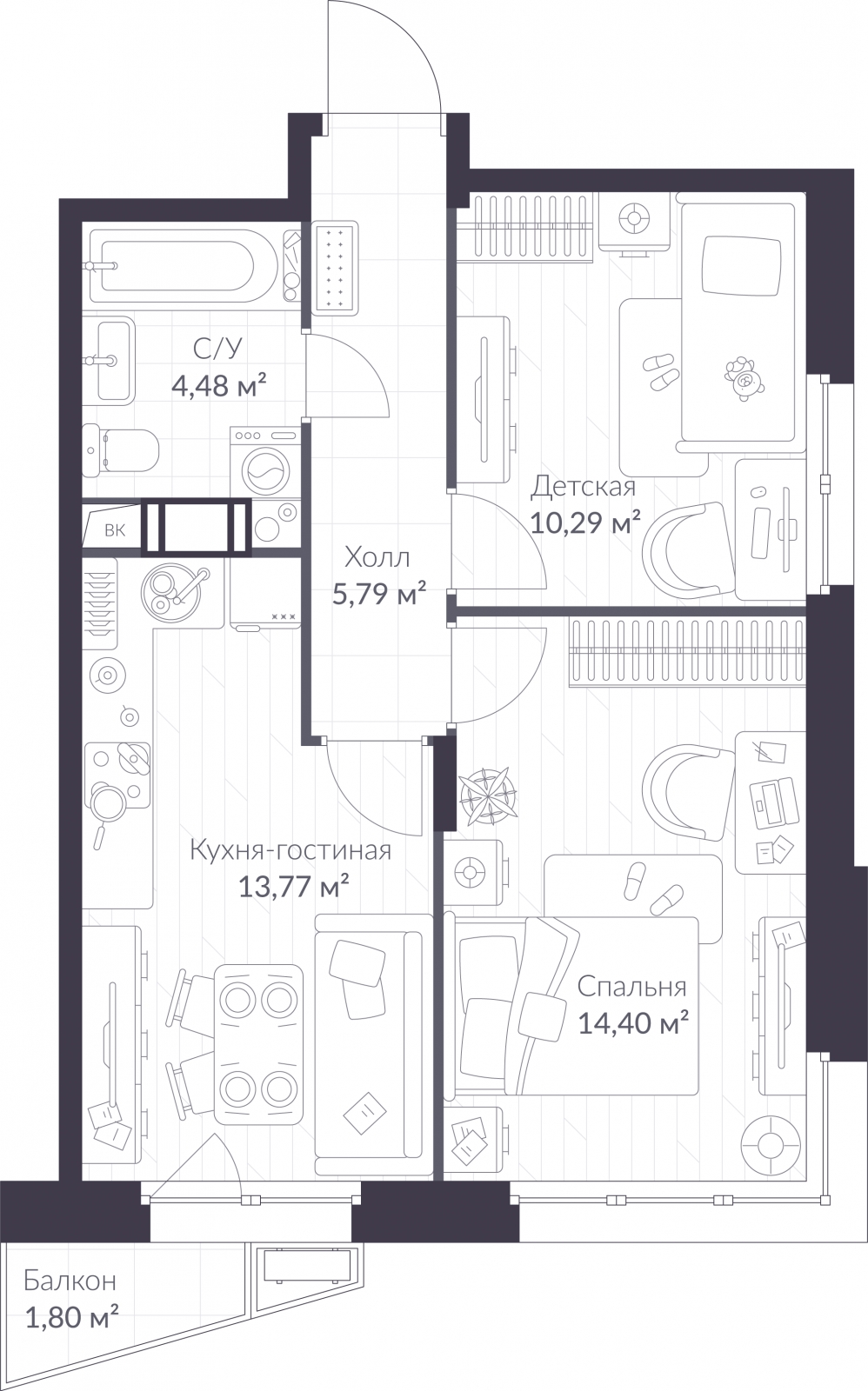 Продается двухкомнатная квартира в Veren Nort Сертолово на 5 этаже. Квартира без отделки, новый собственник может сделать ремонт по своему проекту. Общая площадь: 49.27 кв.м., жилая: 24.69 кв.м., площадь просторной куxни-гостиной: 13.77 кв.м. Квартира угловая, очень светлая, естественная вентиляция при открытии окон. В квартире один балкон, один совмещенный санузел. Высота потолков 2.82 м.