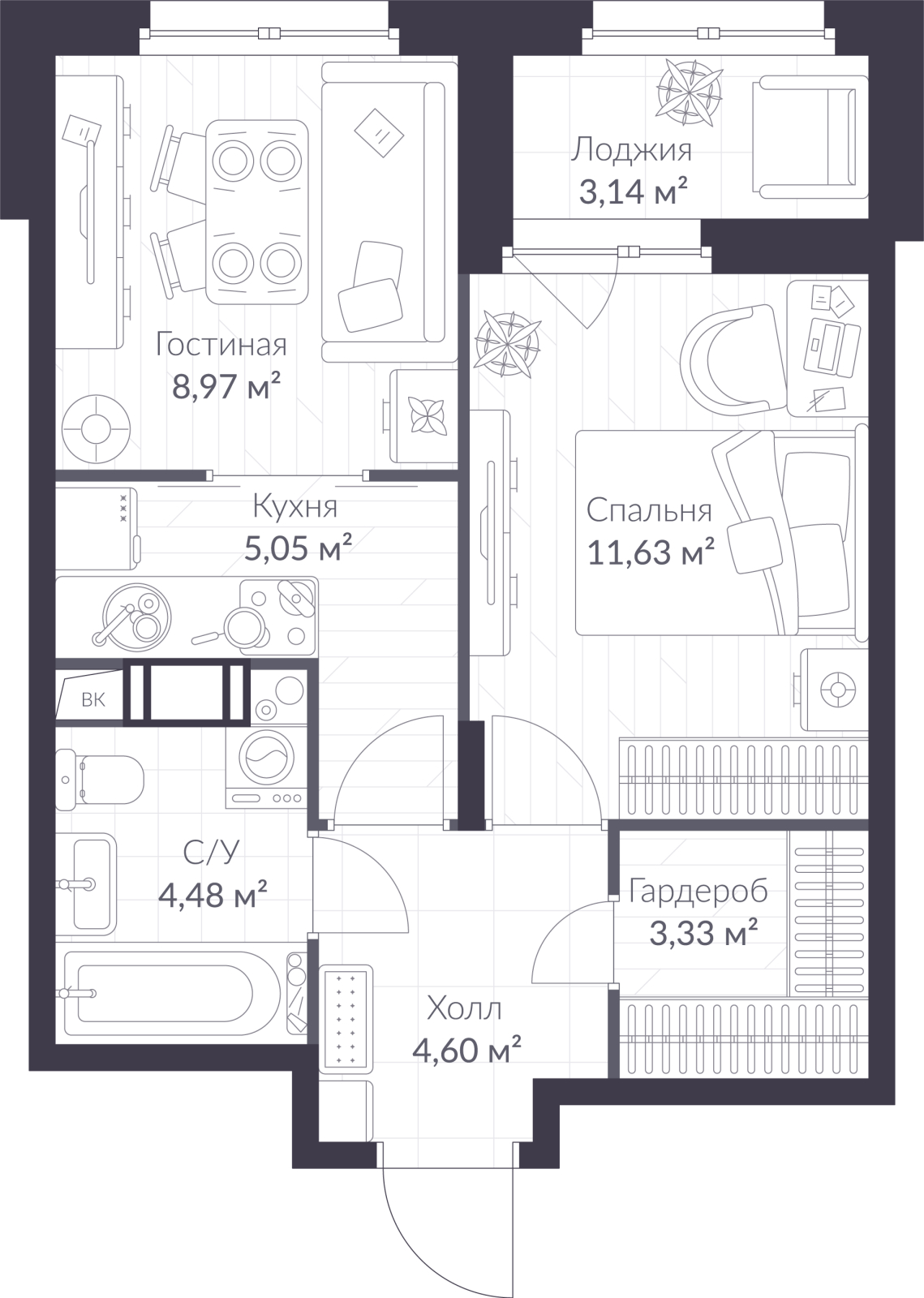Однокомнатная квартира в Veren Nort Сертолово на 6 этаже. Квартира без отделки, полностью готова к ремонту. Общая площадь: 39.63 кв.м., жилая: 11.63 кв.м., площадь просторной куxни-гостиной: 14.02 кв.м. Все окна выходят на одну сторону. В квартире одна лоджия, один совмещенный санузел. Высота потолков 2.82 м.