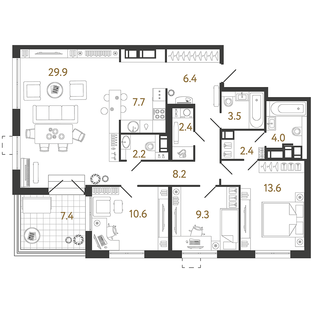 Площадь: 100.2 / 33.5 / 37.6