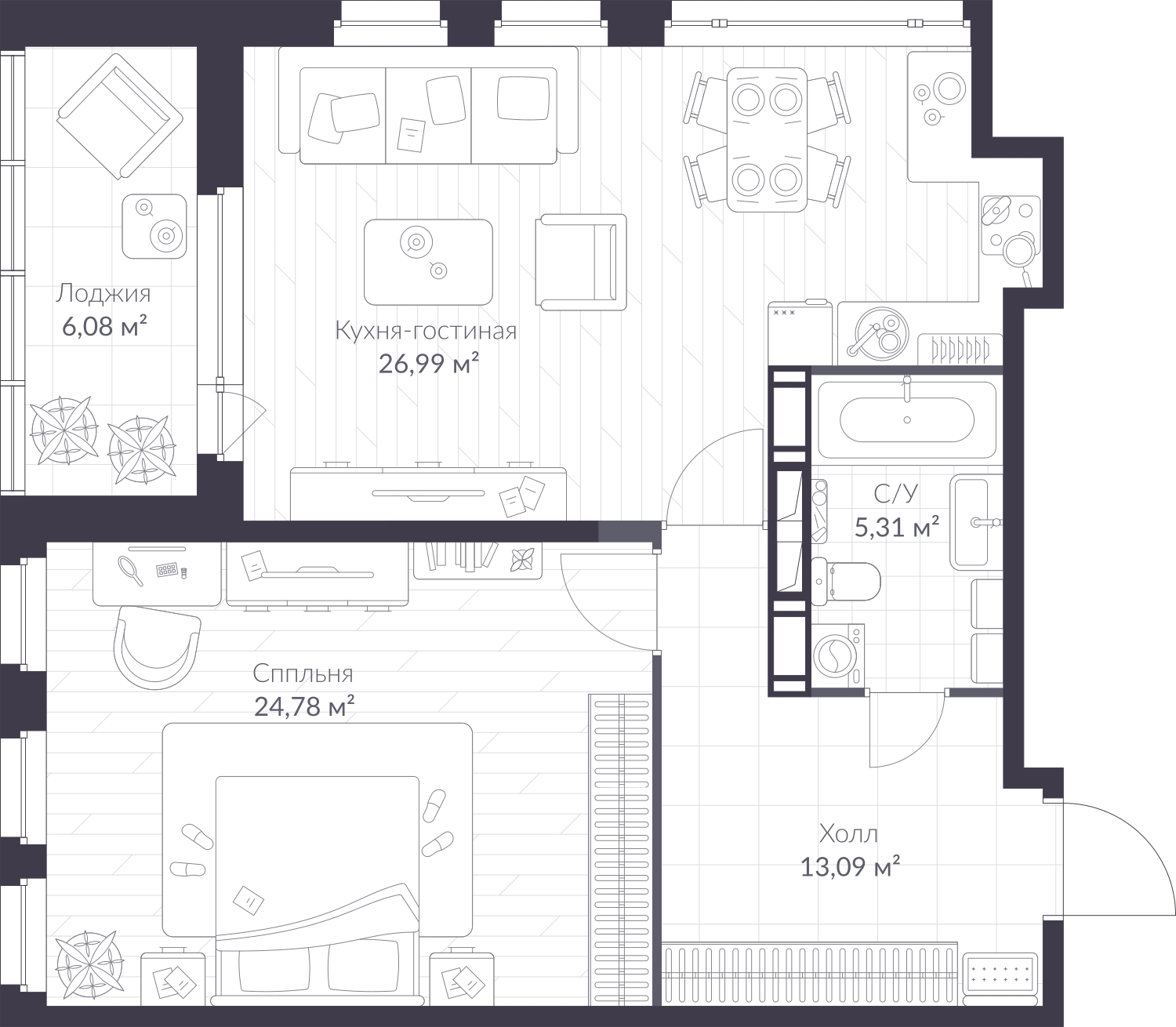 Квартира будет сдана без отделки. Установлены стеклопакеты с повышенной тепло- и шумоизоляцией, установлены элементы отопления, входная дверь, заведены все коммуникации. Вы сможете реализовать свои самые смелые планы дизайн-проекта.