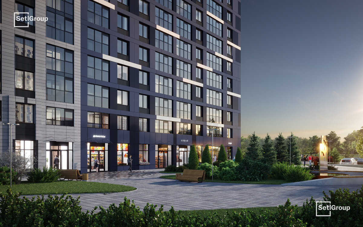 • 5 единых входных групп с авторским дизайном и лаундж-зонами, сити-виллы на первых этажах с палисадниками и высотой потолков до 4 м