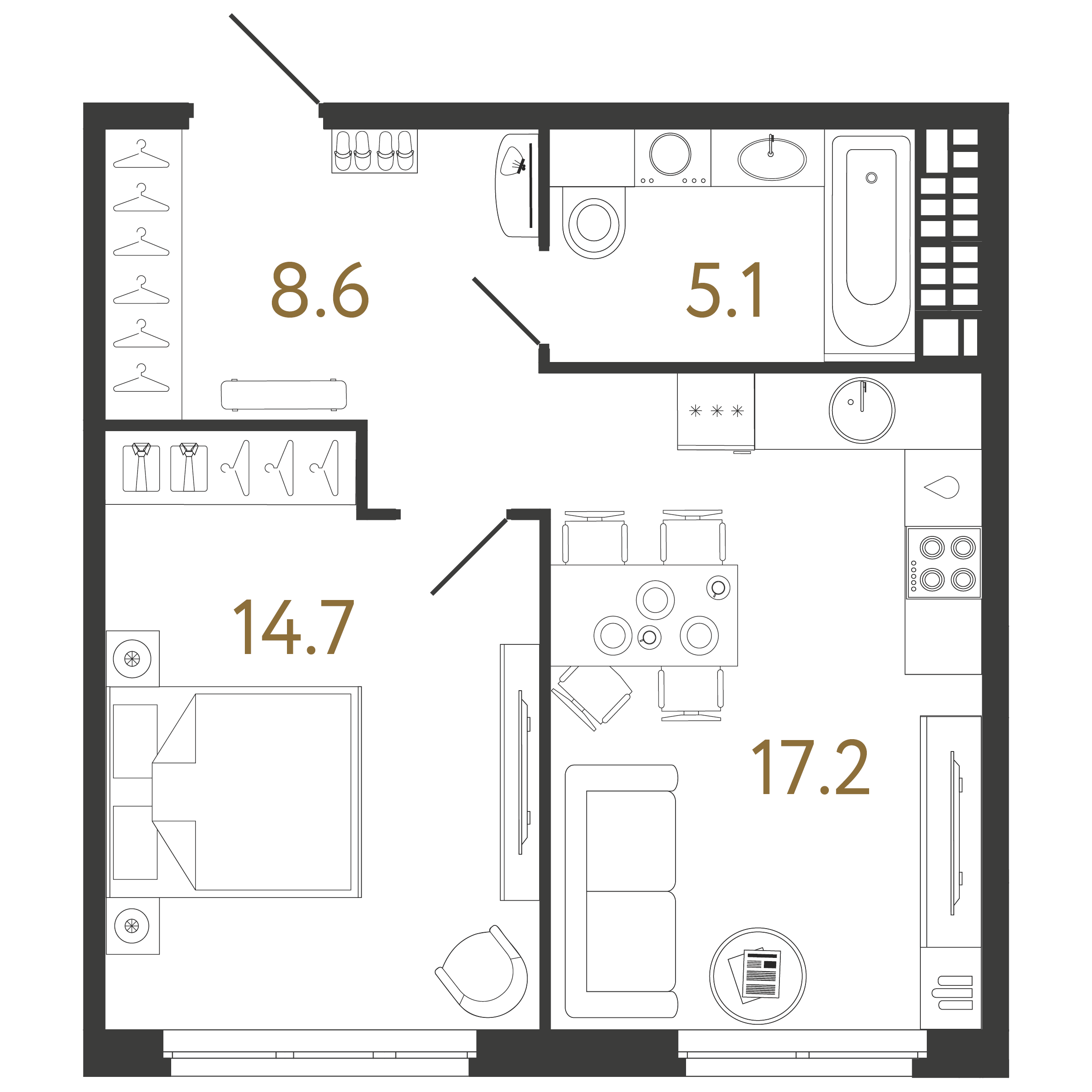Площадь: 45.6 / 14.7 / 17.2