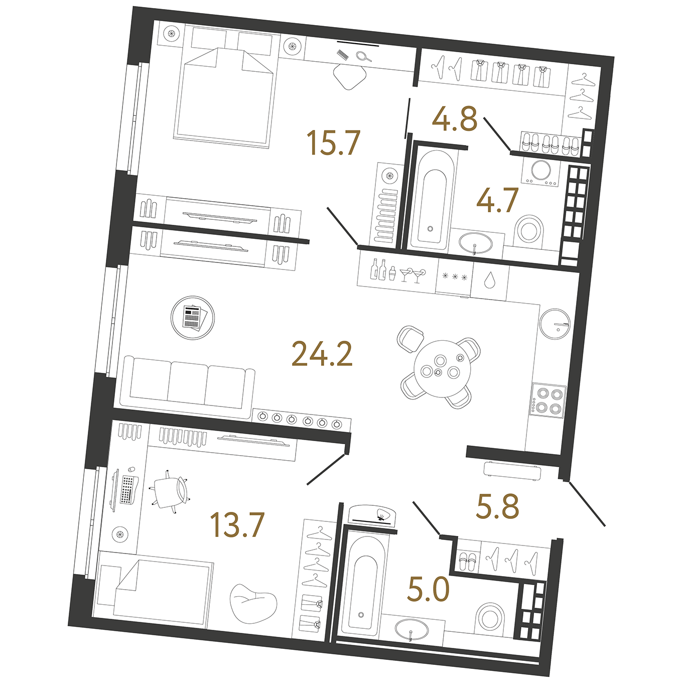 Площадь: 73.9 / 29.4 / 24.2