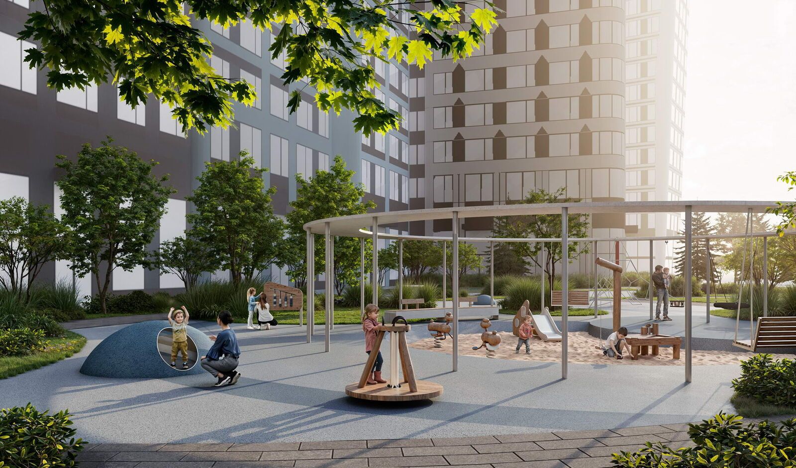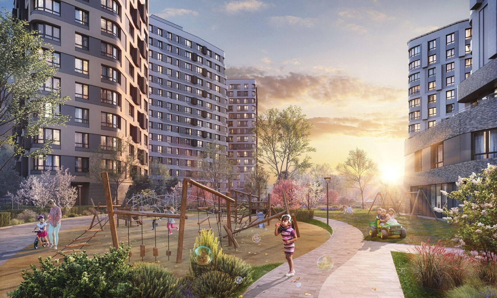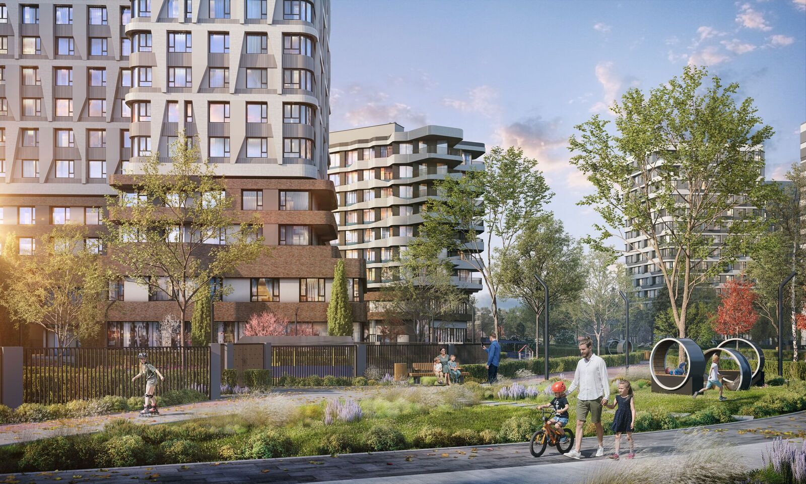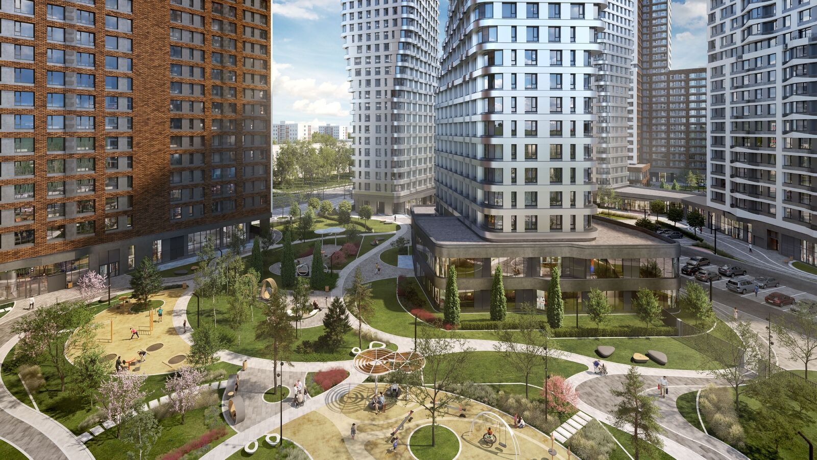 • Закрытые безопасные зелёные дворы-парки без машин!