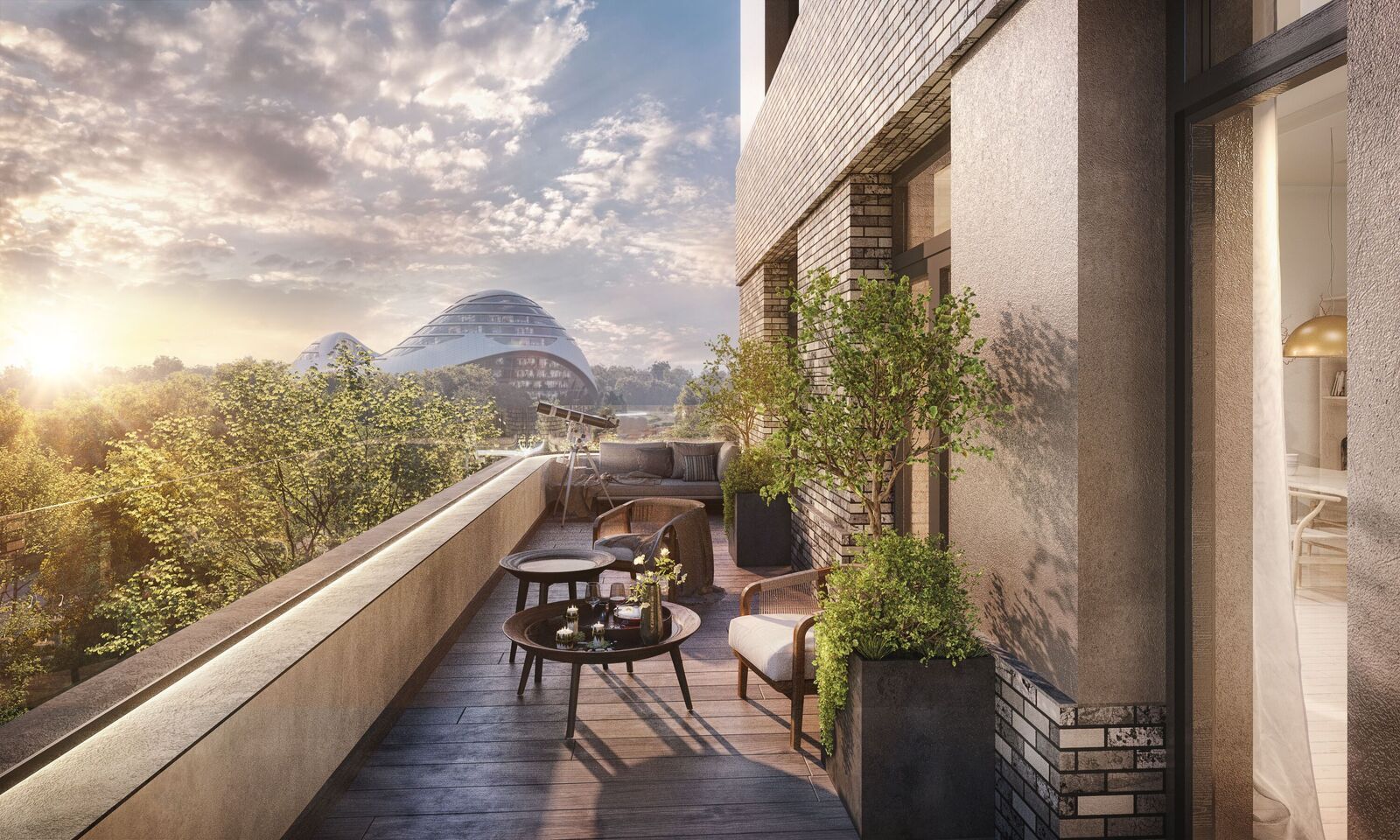 • Квартиры с панорамными окнами, террасами, ванными с окнами и каминами редких форматов.